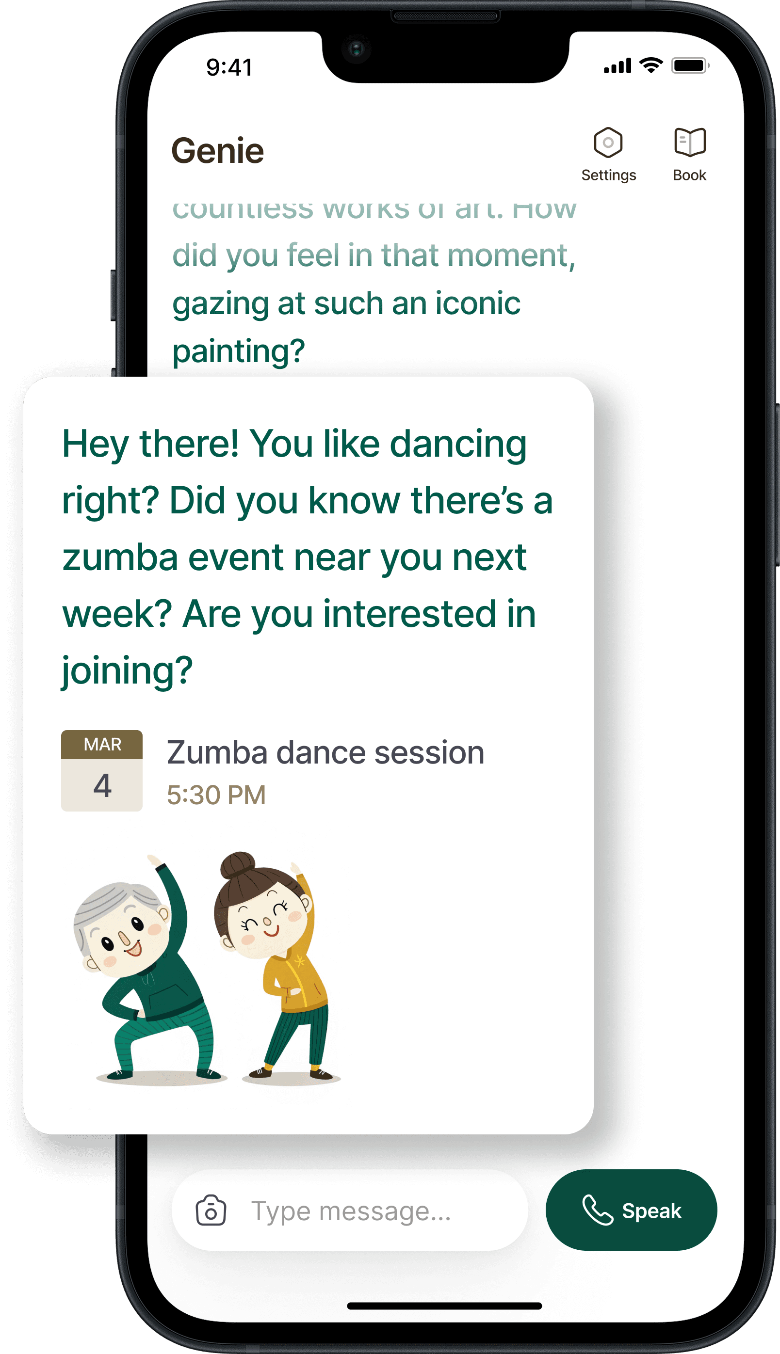 After the activity, Genie will check in with the senior to understand their experience, which enables deeper understanding of their preferences and needs for future recommendations